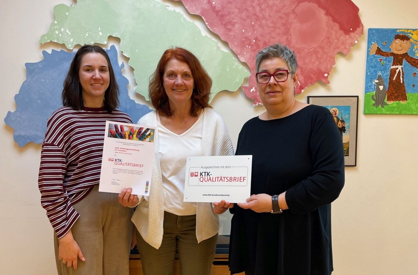 Die Horizonte Kita St. Franziskus in Süchteln wurde mit dem KTK-Qualitätsbrief ausgezeichnet. Die Auszeichnung wird durch den Verband Katholischer Tageseinrichtungen für Kinder (KTK) – Bundesverband e.V. vergeben und basiert auf hohen Standards in den Bereichen pädagogische Arbeit, Partizipation, gelebte Werte und Organisation.