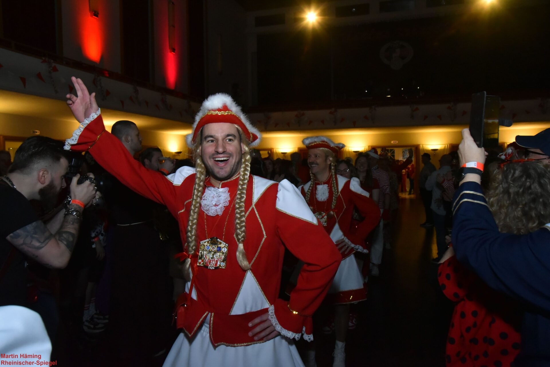 Als Sitzungspräsidenten steuerten Max Koehl und Niels Hüneburg das Spektakel mit routinierter Heiterkeit; ihre Stimmen überbrückten Gassenhauer und Anmoderationen, während das Publikum mit einem Meer aus Fahnen, Hüten und strahlenden Augen antwortete.
