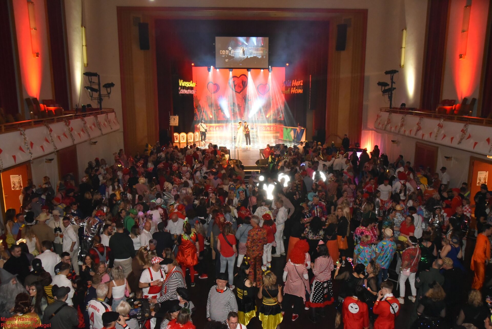 Es begann wie ein Donnern aus Konfetti: ein Einmarsch, so präzise wie ein Trommelwirbel, ein Blitz aus Rot und Weiß – und die Vierscher Festhalle explodierte in Applaus.