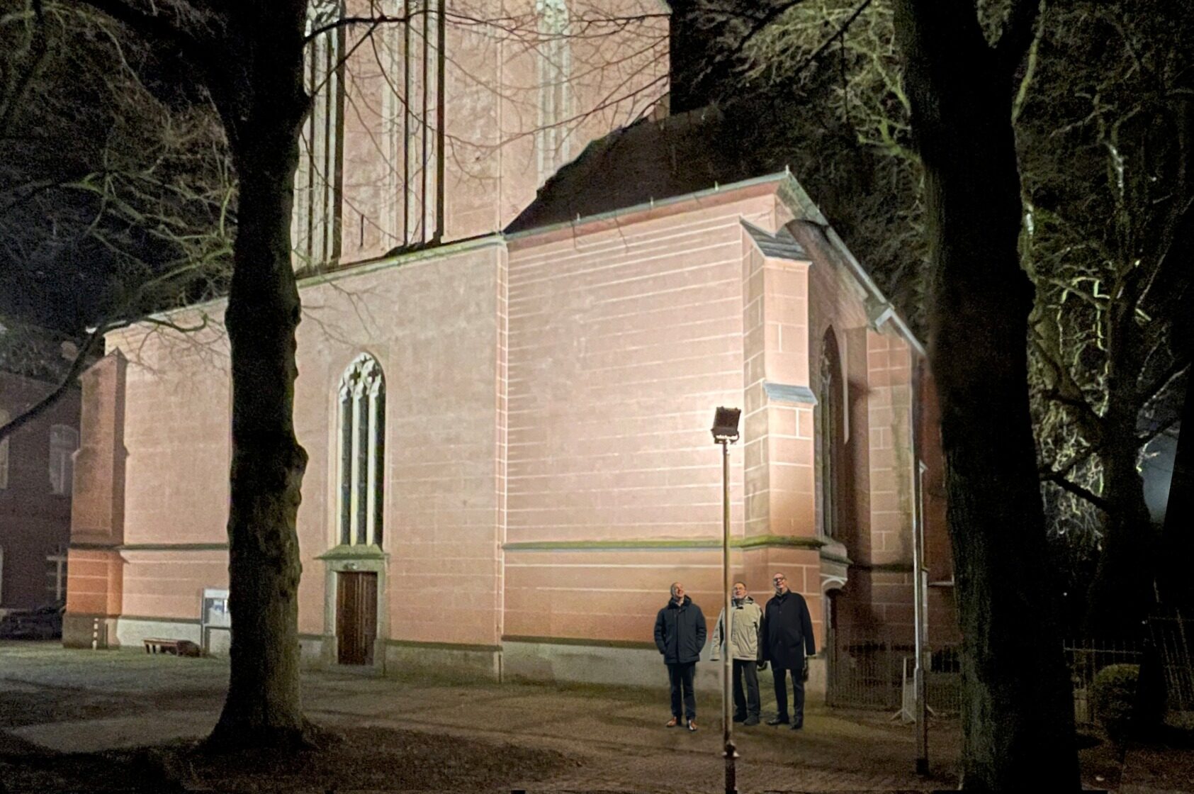 Das Ergebnis kann sich sehen lassen: Wer vom Ingenhovenpark auf die Alte Kirche blickt, erlebt die eindrucksvolle neue Ausleuchtung, die das historische Bauwerk strahlend in Szene setzt und Lobberichs Stadtbild nachhaltig bereichert. (opm)