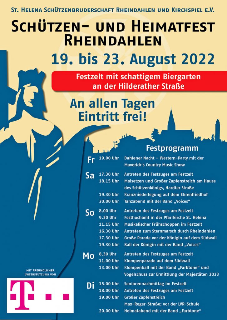 In gewohnter Weise findet das diesjährige Schützen – und Heimatfest vom 19. bis 23. August statt, zu dem die St. Helena Schützenbruderschaft Rheindahlen und Kirchspiel herzlichst einlädt.
