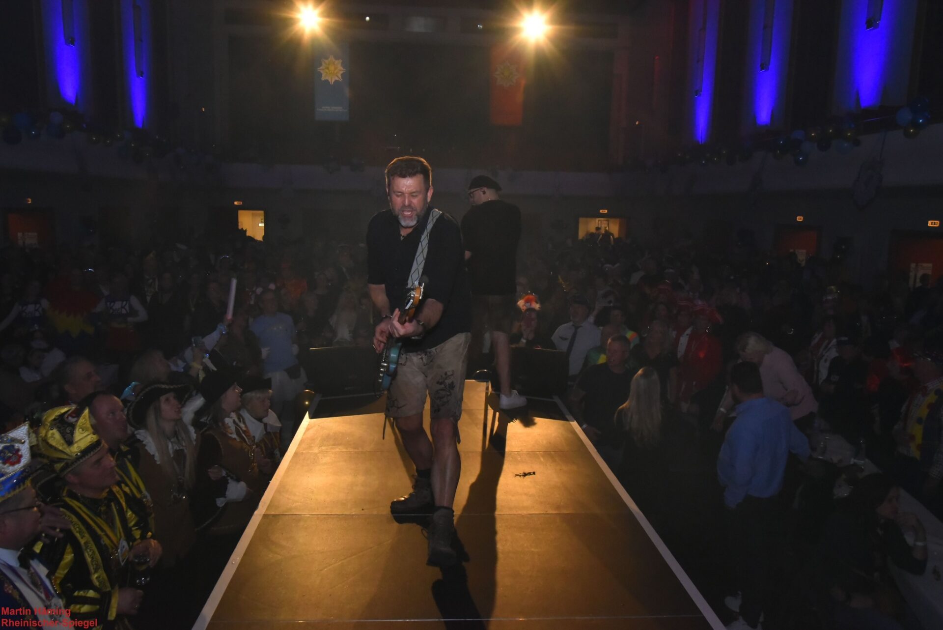 Ein besonderer Moment gehörte dem Besuch aus der Landeshauptstadt: Mit spürbarem Stolz und großem Gefolge zog das Düsseldorfer Prinzenpaar in die Viersener Festhalle ein. Prinz Marcus I. (Marcus Hülscher) und seine Venetia Nicole Nothen wurden nicht nur von Applaus empfangen, sondern von einem eindrucksvollen Bild karnevalistischer Pracht begleitet. Gleich zwei Prinzengarden flankierten den Einzug – die Prinzengarde des Prinzen in kräftigem Rot und die Gardisten der Venetia in leuchtendem Blau. In exakter Formation marschierten die Garden ein, Stiefel auf dem Hallenboden im Gleichschritt, Fahnen erhoben, begleitet von donnerndem Applaus aus dem Publikum.