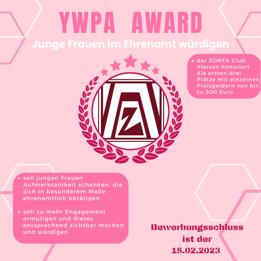 DANN BEWIRB DICH FÜR DEN „YOUNG WOMEN IN PUBLIC AFFAIRS AWARD“ (YWPA) DES ZONTA CLUB VIERSEN!