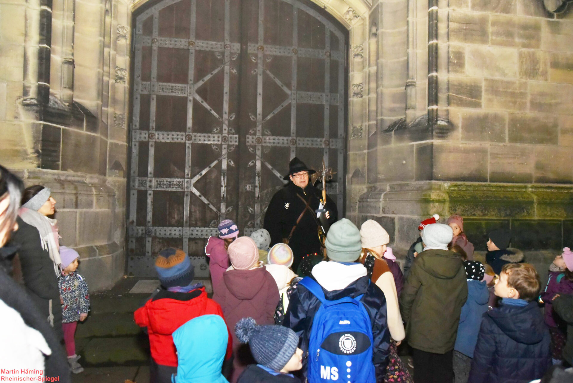 Schon lange bevor der Dülkener Nachtwächter André Schmitz seine Hellebarde hob, füllten am Donnerstag Kinderstimmen die Moselstraße: neugieriges Tuscheln, ein paar aufgeregte Fragen, darüber das gedämpfte Lachen der Erwachsenen.