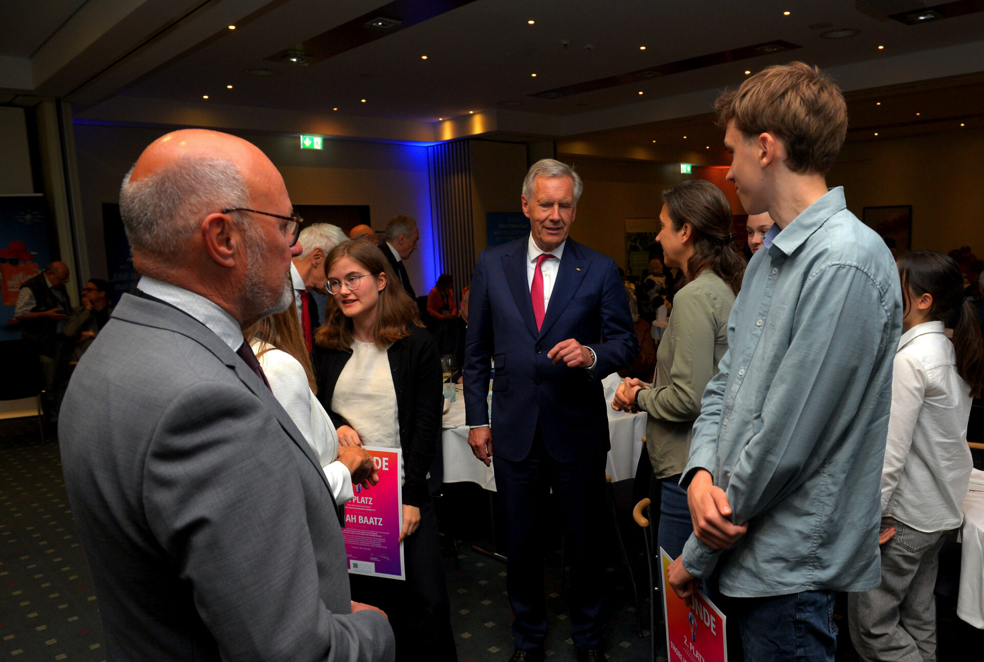 Ein weiterer Höhepunkt des Abends war die Verleihung des „Demokratie-Sonderpreises des Altbundespräsidenten“ an den 14-jährigen Anton Jänsch vom Archi-Gymnasium Soest. Obwohl er keinen Aufsatz im klassischen Sinne einreichte, beeindruckte er Altbundespräsident Wulff mit seinem außergewöhnlichen Engagement für die Demokratie. Anton entwickelte im Vorfeld der Bundestagswahlen die Idee für ein Video, das den KKV-Wahlaufruf „Wir reden mit weil Demokratie Haltung braucht!“ in den sozialen Medien verbreiten sollte. Mit großem Einsatz animierte er den Wahlaufruf, übernahm Videoschnitt und Vertonung und trug maßgeblich dazu bei, dass das Video viral ging und allein auf YouTube über 3.000 Nutzer erreichte. Insgesamt erreichte der KKV durch diese Aktion weit über 30.000 Menschen in den digitalen Medien. Altbundespräsident Wulff würdigte seine bemerkenswerte Art, sich mit unserer Staatsform auseinanderzusetzen, und hob hervor, dass er trotz seines jungen Alters mehr Rückgrat gezeigt habe als viele Wahlberechtigte. Dieser Sonderpreis unterstreicht, dass Engagement für die Demokratie vielfältige Formen annehmen kann und auch außerhalb traditioneller Wettbewerbsformate gewürdigt wird.