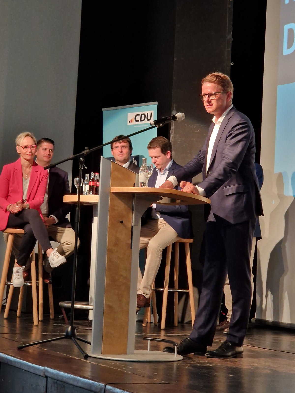 Ein wichtiges Anliegen war ihm auch die Warnung vor einer zunehmenden Spaltung zwischen öffentlichen und privaten Schulen, arm und reich – ein Thema, das er mit Blick auf Chancengerechtigkeit als gesellschaftlich brisant einstufte. Beifall kam von vielen Anwesenden, darunter auch Bürgermeister- und Landratskandidaten der CDU, die das Sommerfest nutzten, um sich vorzustellen.