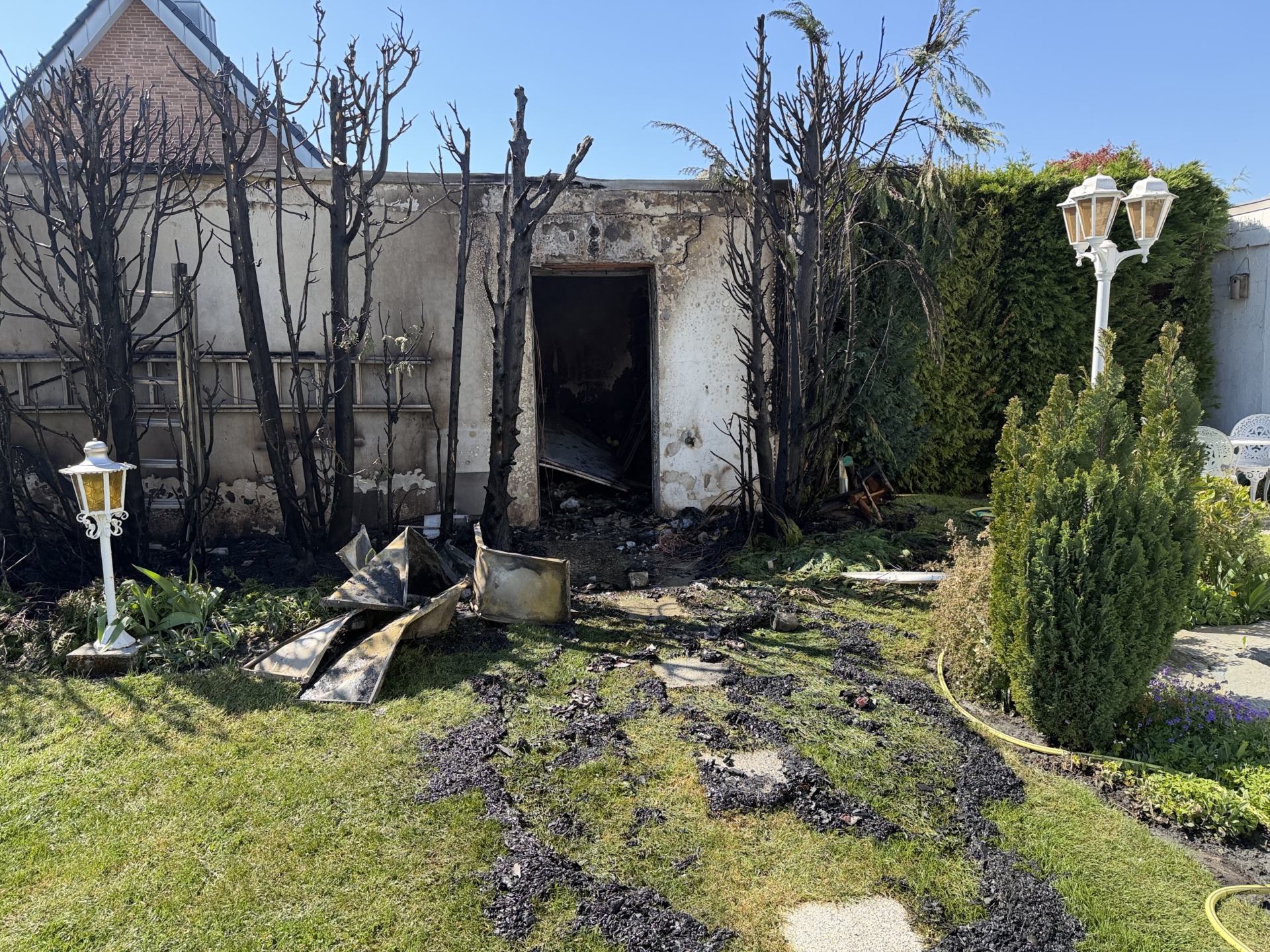Am Mittwochnachmittag (22.04.2026) wurden Feuerwehr und Polizei gegen 14.00 Uhr zu einem Brand auf der Chemnitzer Straße in Dülken gerufen, es brannten eine Garage und eine angrenzende Hecke.