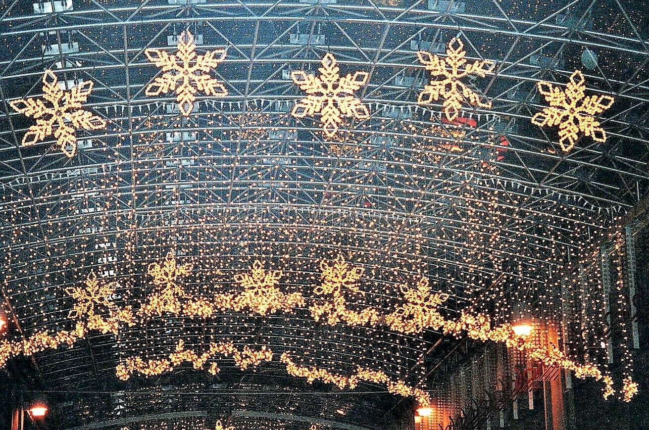 Sonderzüge nach Nürnberg und Dresden. Glühwein und Reibekuchen. Original Erzgebirge und Frankfurter Würstchen. Krippenfiguren. Weihnachtsmänner. Weihnachtsfrauen. Duftströme. Es riecht und klingelt. Glöckchen klingeln. Kassen klingeln. Lichter auf dem Markt. Lichter über dem Markt. Lichterglanz und Lichterketten. Geschiebe und Gedränge. Schnickschnack und Shoppingwelt. Advent? Weihnachten?