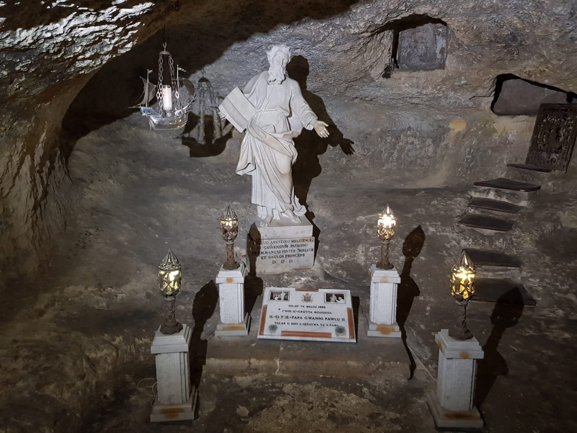 Malta – Anstelle einer mittelalterlichen Vorgängerkirche im Stil des römischen Barock wurde St. Paul in Rabat 1664-1683 erbaut, Großmeister Adrien de Wignacourt errichtete hier in der Folgezeit ein Kollegiat von Klerikern. Reich ausgestattet mit Altären und Gemälden aus dem 18. Jahrhundert, darunter ein großflächiges Hochaltarbild des Künstlers Stefano Erardi, welches den Schiffbruch des hl. Paulus wiedergibt, zieht es die Besucher zunächst in die Paulusgrotte rechts unter der Kirche. Hier soll Paulus selbst die Heilige Messe gefeiert haben und auch Papst Johannes Paul II war hier 1990 zu Besuch.
