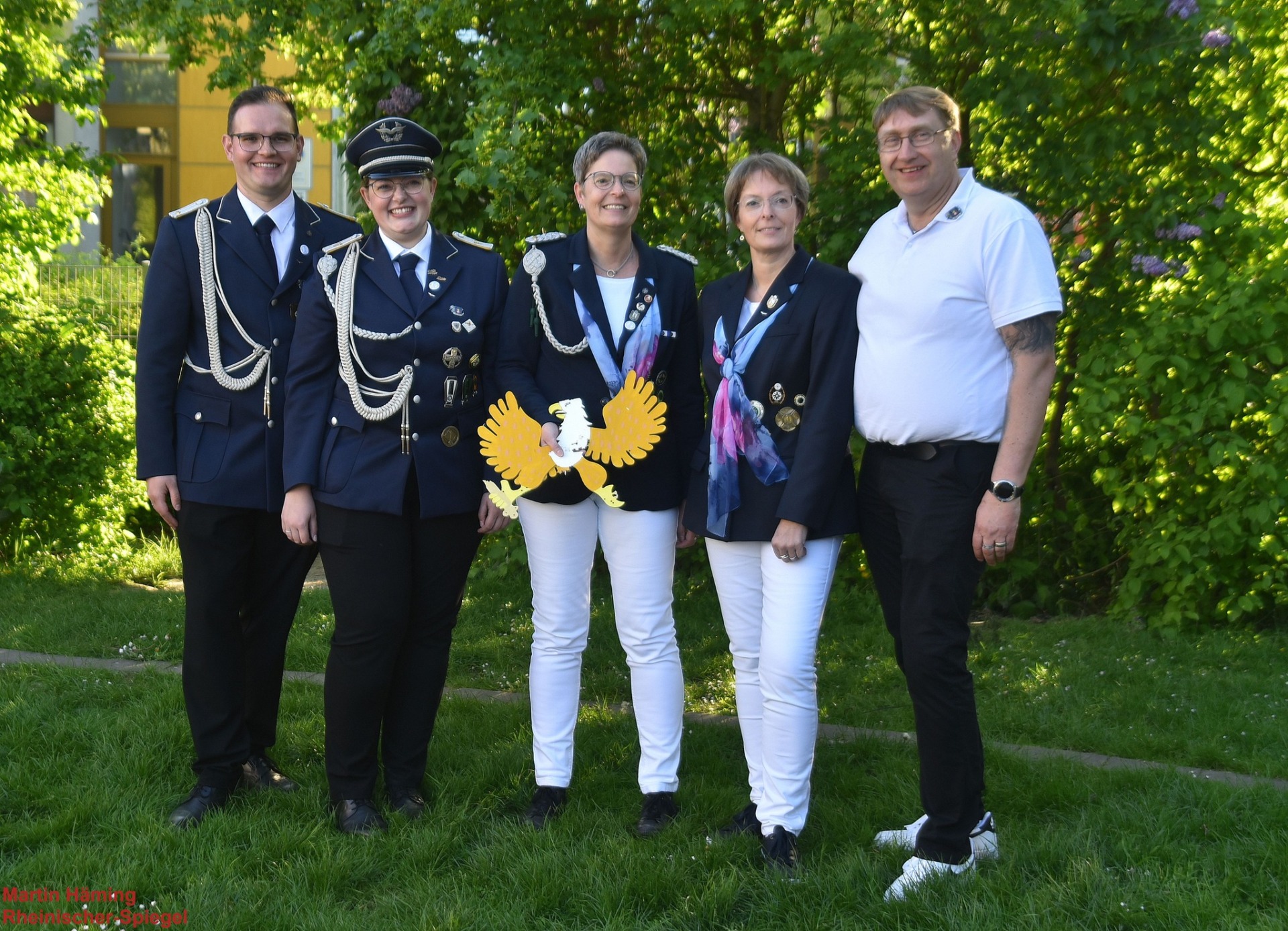 Als das Schießen auf den Königsvogel begann, hatte sich die Stimmung längst verdichtet. Acht Anwärterinnen und Anwärter traten nun an, darunter drei Frauen, und der Wettbewerb entwickelte jene Spannung, die nur Veranstaltungen hervorbringen, bei denen jeder Schuss mehr ist als nur ein technischer Vorgang. Es ging um Geduld, um Nerven, um das Abwarten des richtigen Moments. Der Vogel zeigte sich zäh, als wolle er den Namen der künftigen Regentin erst nach reichlicher Prüfung preisgeben. Schließlich setzte sich Kerstin Wassenberg durch. Mit dem 223. Schuss brachte sie den hartnäckigen Vogel zu Fall. An ihrer Seite stehen Heike Schroeren und Alissa Paffrath als Ministerinnen. Der Moment der Entscheidung gehörte zu jenen, in denen Applaus und Erleichterung zugleich in die Runde gehen: Nicht nur, weil ein Wettkampf beendet ist, sondern weil mit ihm ein neues Kapitel beginnt.
