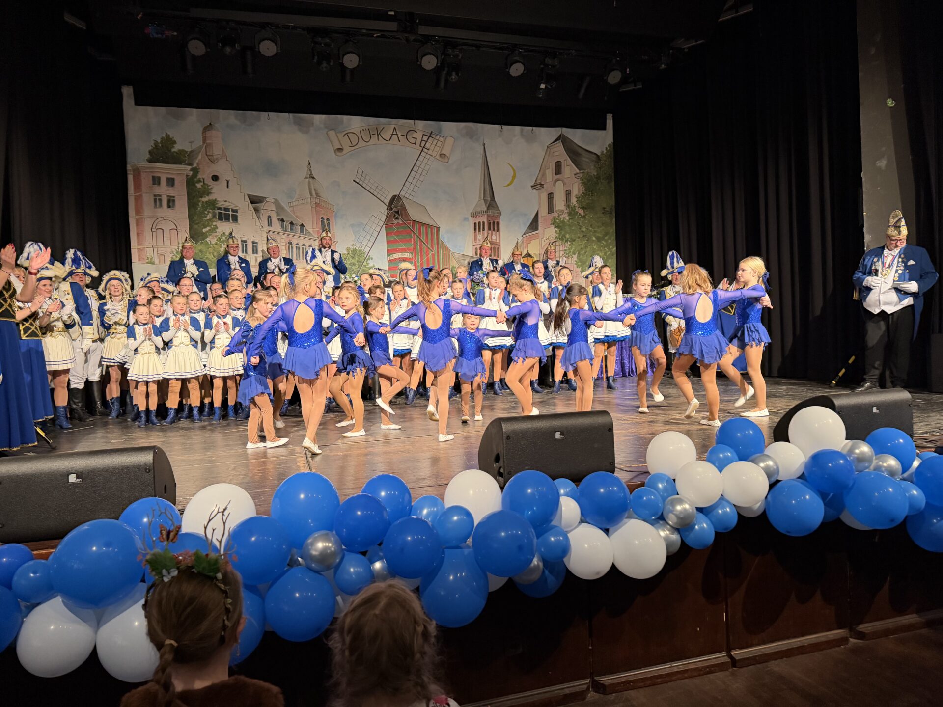 Die Dü-Ka-Ge, inzwischen rund 150 Mitglieder stark, blickt auf eine bewegte Vereinsgeschichte zurück. Seit ihrer Gründung im Mai 1948 im „Looser Fritz“ am Alten Markt ist sie eines der Herzen und Motoren des Dülkener Karnevals. Besonders die Funkengarde, die 1951 ins Leben gerufen wurde, hat schon zahlreiche Talente hervorgebracht. Dass der Nachwuchs gesichert ist, bewiesen die kleinen Jecken mit strahlenden Augen, geschmeidigen Tänzen und einem Elan, der die Herzen der Zuschauer höherschlagen ließ.