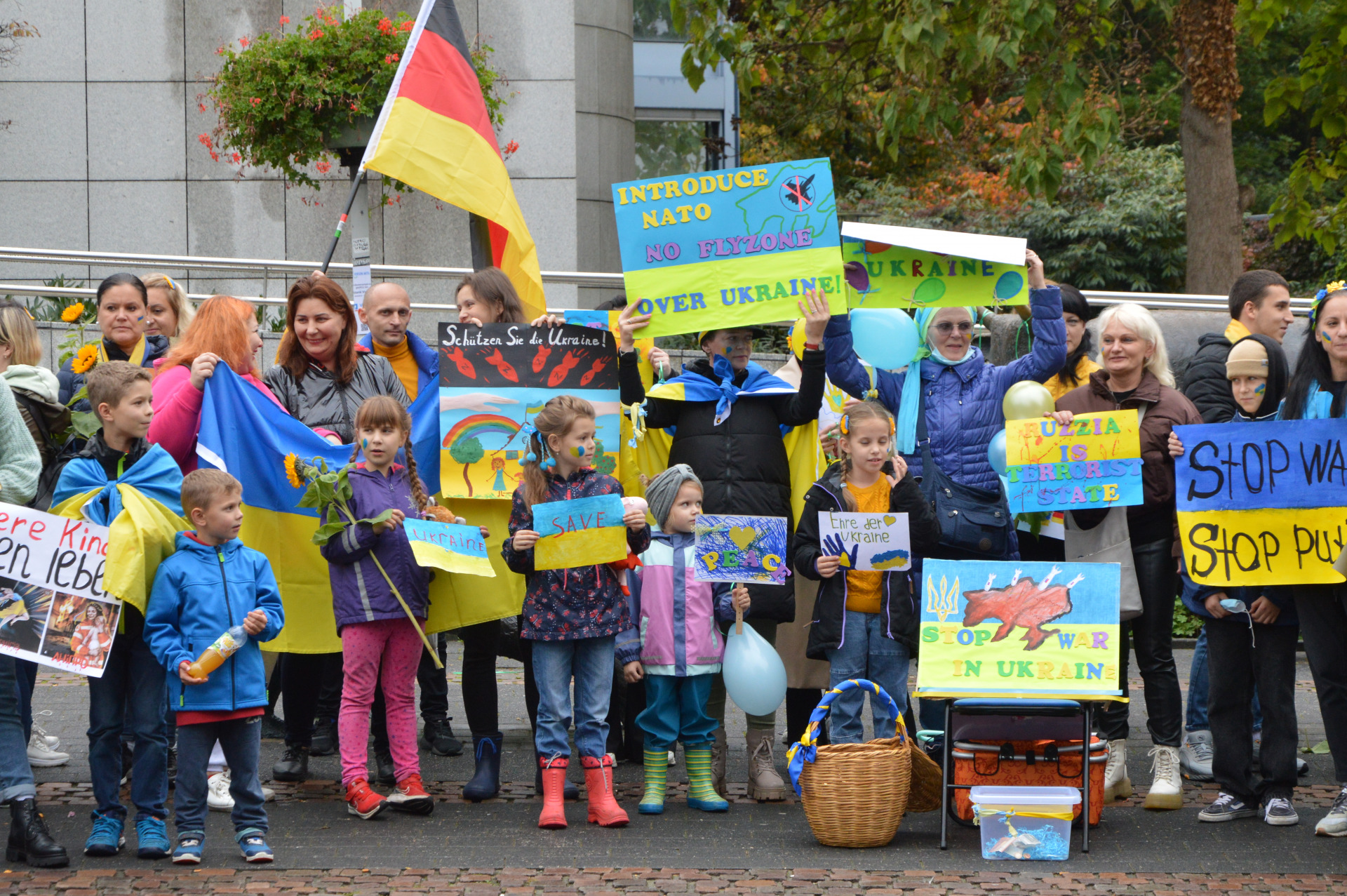 „Wir sind aus Solidarität hier zusammengekommen für Familie, Freunde, Bekannte, Brüder und Schwestern, die in der Ukraine verblieben sind“, so Inna Shpakovska. Die Teilnehmer fürchten um die, die das Land nicht verlassen haben. Bangen um Ehemänner, die sich in russischer Gefangenschaft befinden. Trauern um Verstorbene. Und wenden sich auch an die Politik aller Länder, die der Ukraine beistehen.