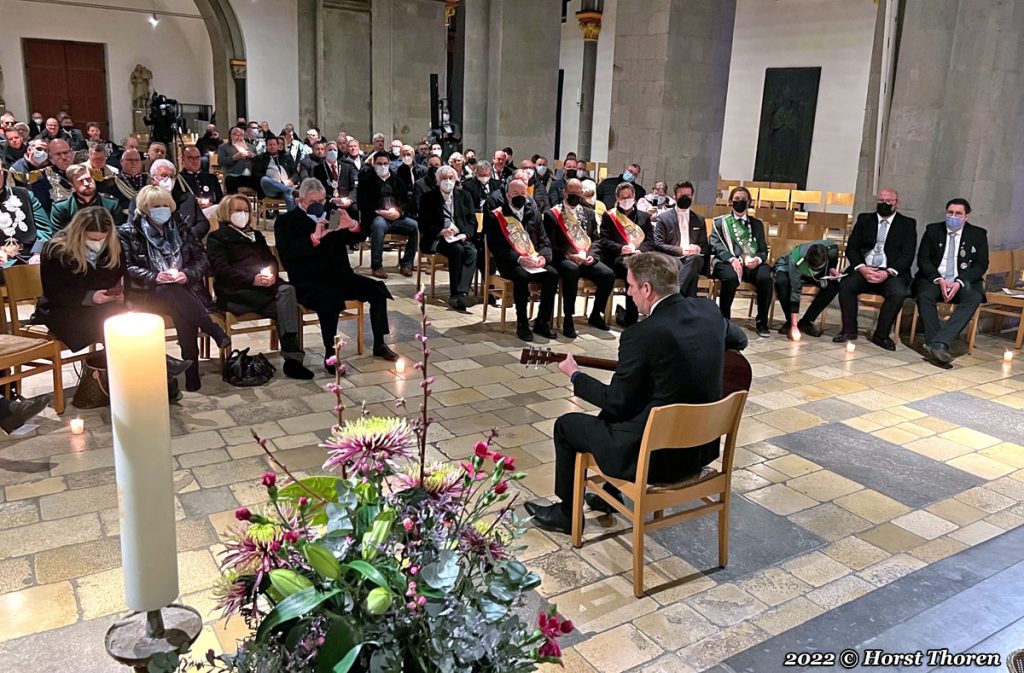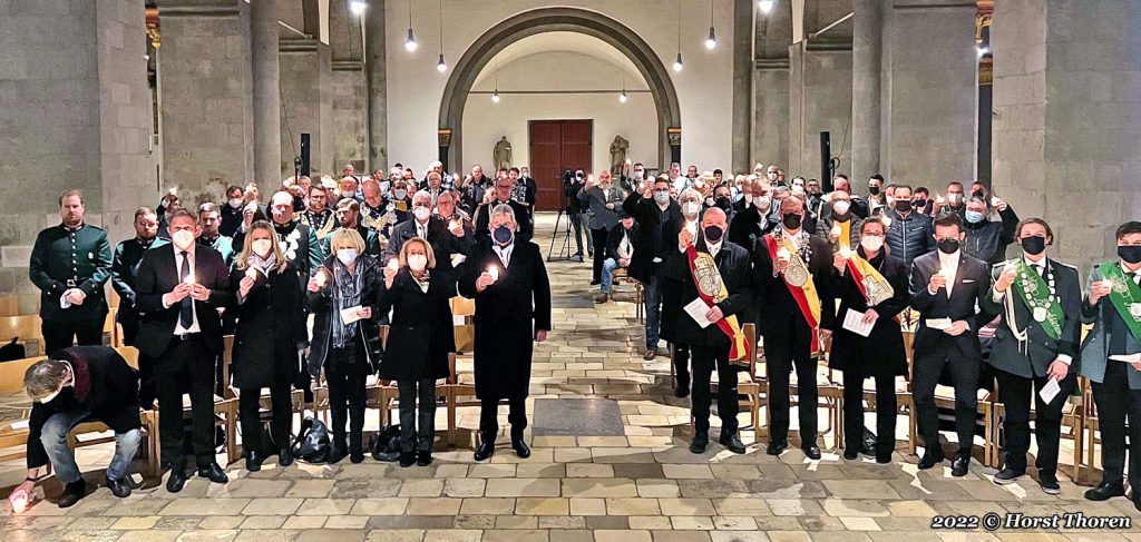 Da die Wallfahrtskirche in Hehn nicht zur Verfügung stand, mußte der Bruderrat des Bezirksverbandes statt zur Wallfahrt in diesem Jahr zum „Nachtgebet der Schützen“ in die Münsterbasilika einladen. Leitwort war „Frieden auf Erden“.