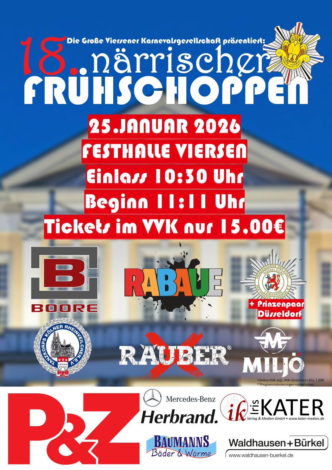Die Grosse Viersener Karnevalsgesellschaft lädt zum Frühschoppen mit Starbesetzung