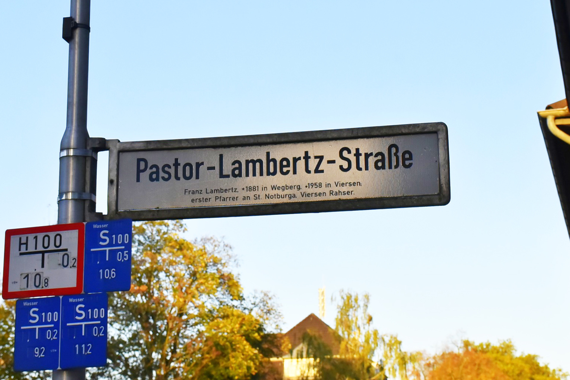 Viersen – Die Pastor-Lambertz-Straße, die von der Rahserstraße im Süden, hinter der Eisenbahnunterführung, bis zur Nauenstraße im Norden verläuft, trägt den Namen eines Mannes, der nicht nur die Herzen seiner Gemeinde bewegte, sondern auch das Leben vieler Viersener nachhaltig prägte. Benannt ist die Straße nach Pfarrer Franz Lambertz (1881–1958), der von 1948 bis zu seinem Tod als Pfarrer der Gemeinde St. Notburga wirkte und sich durch seinen unermüdlichen Einsatz für seine Mitmenschen einen Namen machte.