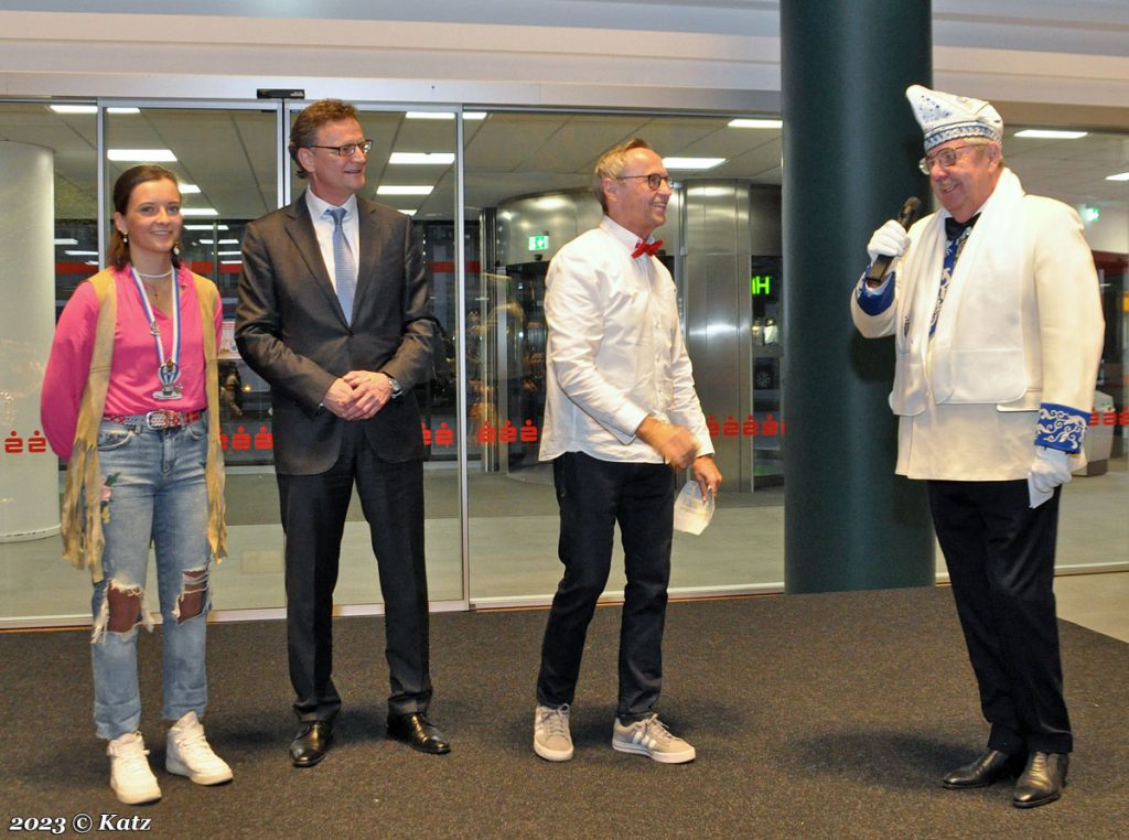 Nießen wies darauf hin, dass die Prinzenpaare gerade im Tiefflug von Köln-Hürth nach Mönchengladbach zurückgekommen seien. Sie waren dort beim Ministerpräsidenten eingeladen und haben die Fahne für Mönchengladbach hochgehalten. Die fleißigen Hände im Hintergrund, damit war der Hofstaat gemeint, passen auf, dass nichts schief gehe.