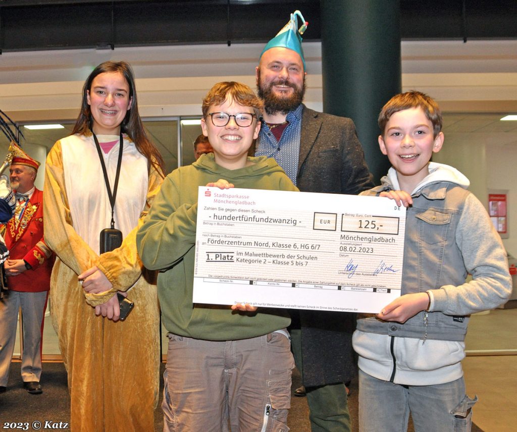 Nießen dankte Wilms und der Stadtsparkasse nicht nur für den Malwettbewerb sondern auch dafür, dass sie am Veilchendienstag eine Riesenparty am Alten Markt veranstalten, für das Hoppeditzerwachen sowie für die Prämierung der schönsten Kostüme im VDZ.