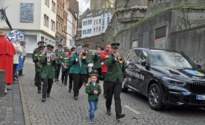 Unter den Klängen der Musikkameraden und des Reitercorps Speick zogen dann die Prinzenpaare in Begleitung vieler Karnevalsvereine zur noch verhüllten Stele.