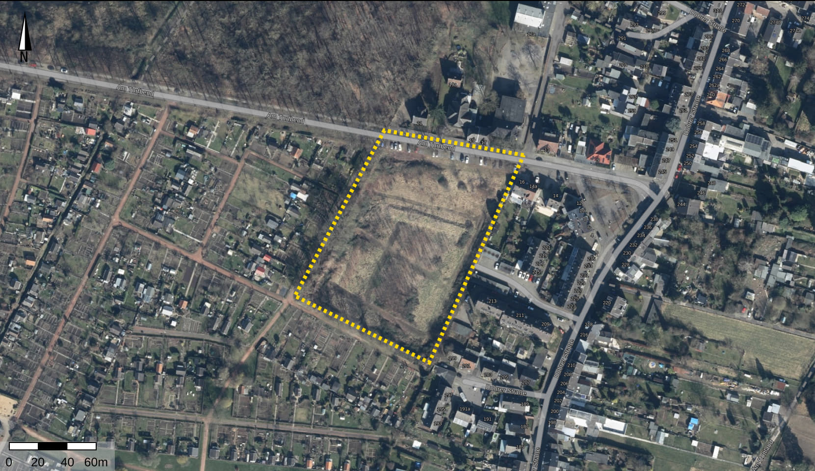 Im Bereich des ehemaligen Sportplatzes „Am Torfbend“ soll im Stadtteil Mülfort-Dohr ein Wohngebiet mit rund 40 Wohneinheiten entstehen. Foto: Stadt Mönchengladbach