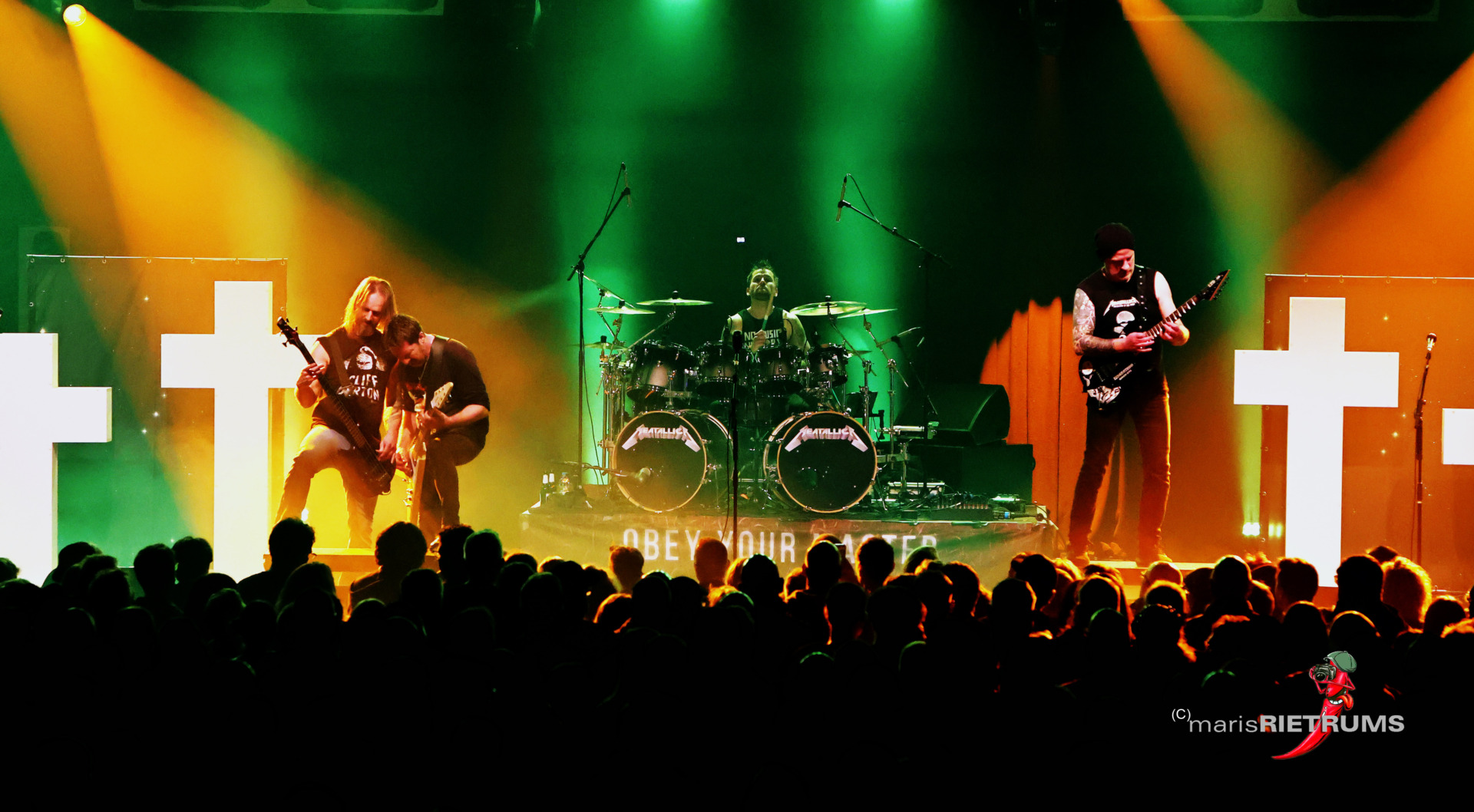 Auffällig war die Detailtreue, mit der die Bands ihre Vorbilder interpretierten. Die Formation „Meatallica“ etwa überzeugte nicht nur mit präzisen Gitarrenläufen, sondern auch mit einer Bühnenästhetik, die stark an das Original erinnerte. „Bon Scotch“ ließ den unverwechselbaren AC/DC-Sound mit druckvollen Riffs und markanter Stimme aufleben, während „Bad Medicine“ den Pathos und die Stadiontauglichkeit von Bon Jovi inszenierte. Mit „Deep White“ verschmolzen die Klangwelten von Deep Purple und Whitesnake zu einem organischen Gesamtbild.