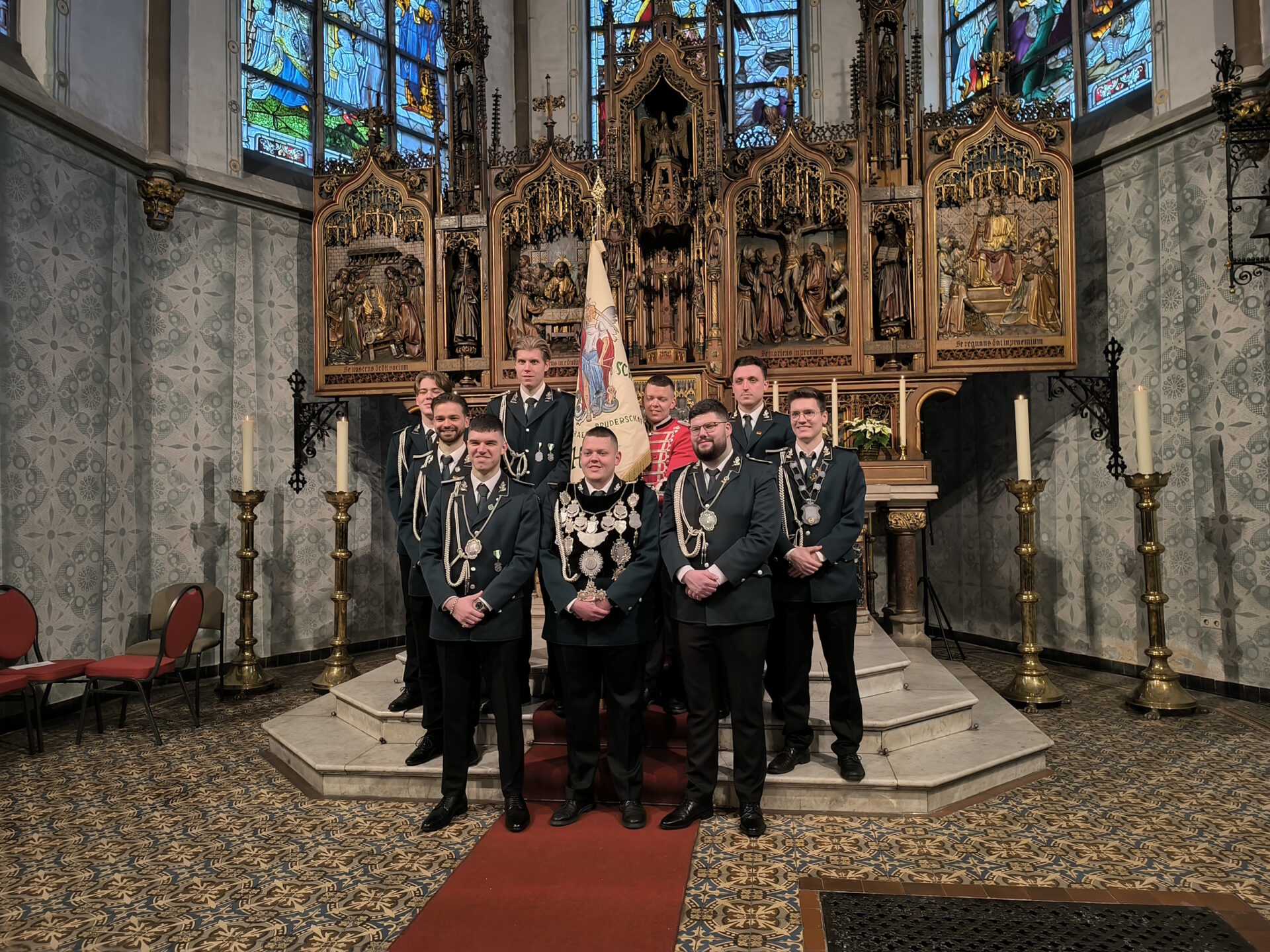 In der Krönungsmesse am 18.01.2026 fand die feierliche Übergabe der Traditionsfahne an die Schützengruppe Jägerzug Holt statt. Der Jägerzug Holt hat damit das Amt für die Zukunft übernommen und wird unsere Traditionsfahne bei allen Veranstaltungen der St. Michaels Bruderschaft Holt würdevoll repräsentieren. Vielen Dank für die Bereitschaft zur Übernahme dieser besonderen Aufgabe und für das Engagement in den Diensten unserer Tradition.