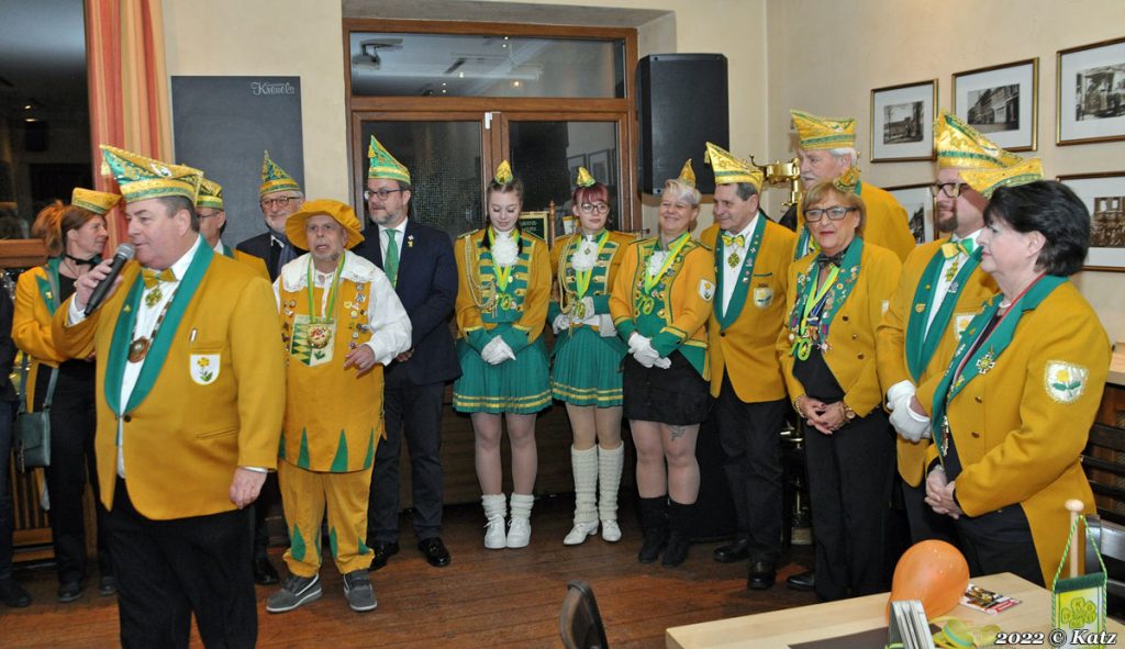 Anschließend begrüßte Klein ganz die Vertreter aus Politik und die Vertreter verschiedener Vereine. Sein ganz besonderer Gruß ging an Doris Klemens, die Ehrenpräsidenten der Gesellschaft, die 19 Jahre lang die Damensitzungen geleitet hatte.