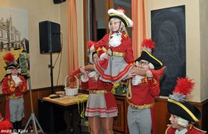 Dann passierte einem kleinen Mariechen der Juniorengarde ein Malheur, die Naht am Ärmel ihrer Jacke war aufgegangen. Gut war, dass zu diesem Zeitpunkt die Schneiderein der Garde, Ute Ditges-Vuillot, anwesend war und mit einigen Nadelstichen dieses Problem lösen konnte.