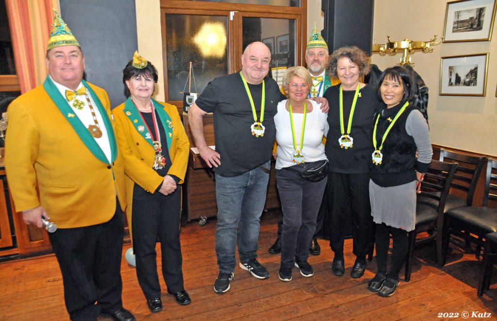 Für die Gesellschaft war es auch eine Ehre, einmal dem Inhaber der Gaststätte Kreuels, Hermann Dürselen, und seinem Team Dank zu sagen für die Zurverfügungstellung der Räumlichkeiten. Hierfür erhielten sie jeweils den Sessionsorden der Gesellschaft.