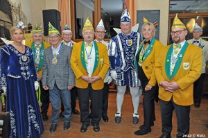 Die Prinzenorden wurden dann an Hajo Siemes und Angelika Paulussen verliehen. Als Dank für die Einladung überreichte das Prinzenpaar ihr Bild sowie eine Flasche Bolten Bier an die Gesellschaft.