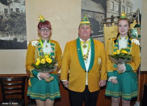Mit großem Jubel wurde dann das frisch proklamierte Prinzenpaar Stefan und Bianca mit Hofmarschall Christian Ernst sowie den Adjutanten Dieter Lichtenhahn und Rainer Böhm empfangen. Hier muss gesagt werden, dass Rainer Böhm ersatzweise als Adjutant eingesprungen war, da der eigendliche Adjutant Stefan Neus bei dieser Veranstaltung als Vorsitzender präsent sein musste.
