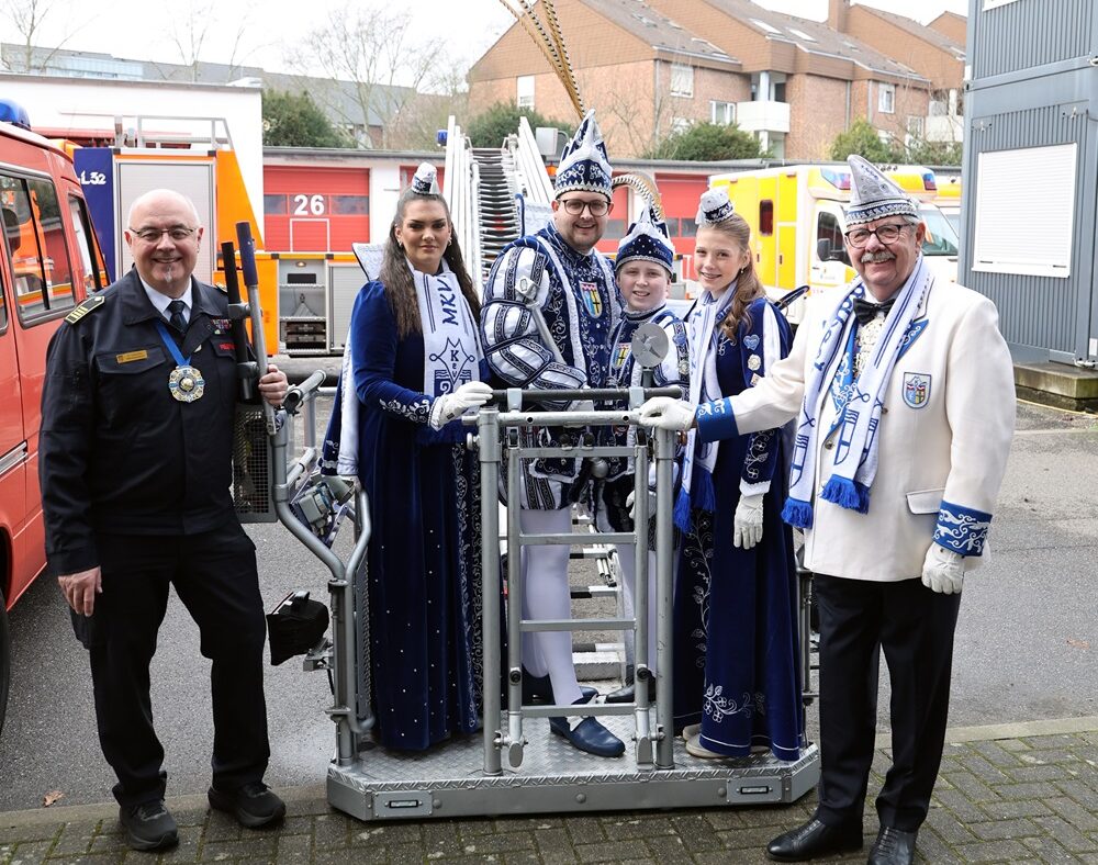 Mönchengladbach – Gemeinsam mit Kolleg*innen und Kamerad*innen hat der Vorsitzende des Stadtfeuerwehrverbandes Ltd. städt. Branddirektor Dirk Schattka und der Vorsitzende des Mönchengladbacher Karnevalsverbands Gert Kartheuser die närrischen Oberhäupter auf ihre Feuerwehrtauglichkeit getestet. „Die Karnevalisten sind einsatztauglich für die kommenden Tage“, so das Fazit von beiden. Auch die närrischen Oberhäupter waren begeistert von der Spritztour in knapp 30 Metern Höhe.