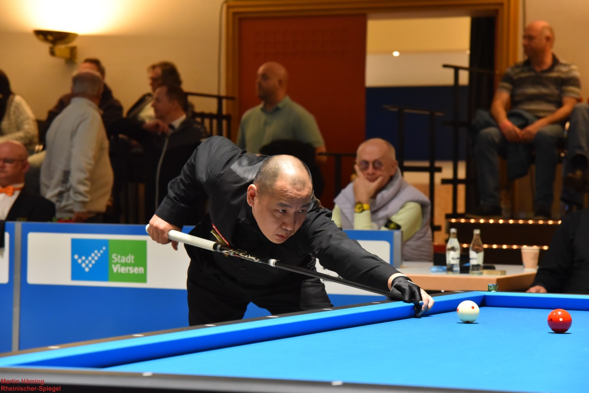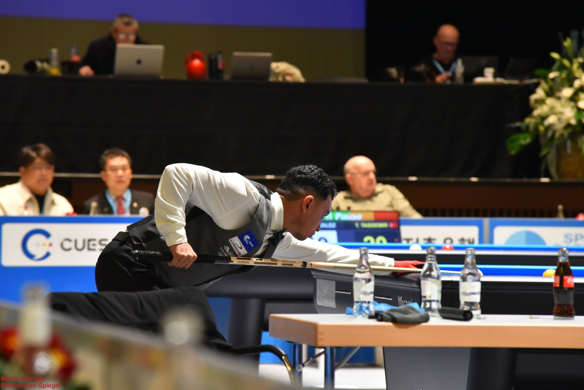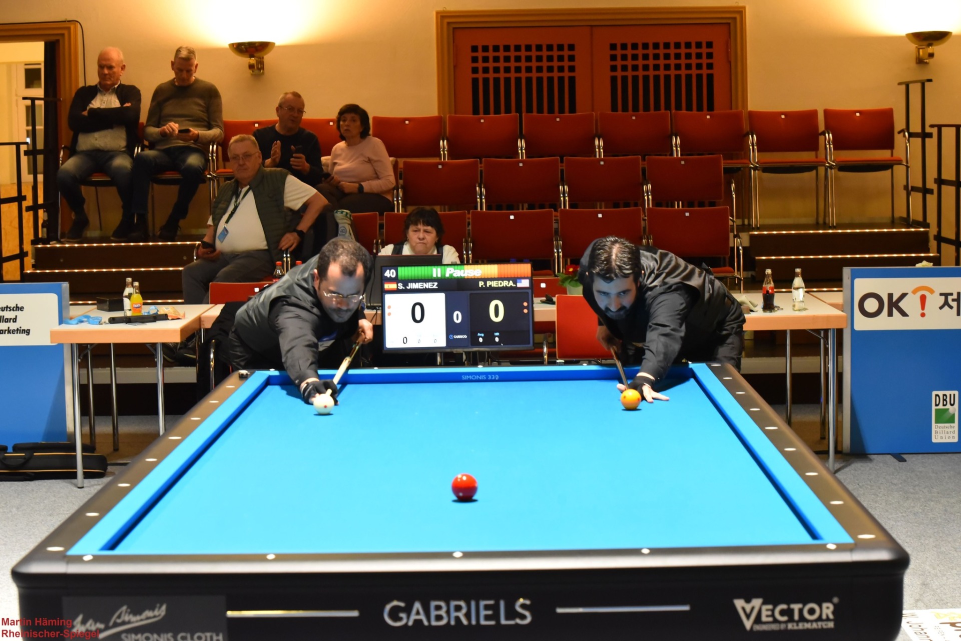 Martin Horn traf auf Quyet Chien Tran, einen der profiliertesten Vertreter des vietnamesischen Dreibandsports. Über weite Strecken lieferten sich beide ein enges Rennen, das von kurzen, präzise gesetzten Serien und kontrolliertem Positionsspiel geprägt war. Immer wieder konterten sie einander, Fehler wurden umgehend bestraft, Vorteile blieben flüchtig. In der entscheidenden Phase gelang es Tran, sich den minimalen Vorsprung zu sichern, den er mit 40:38 ins Ziel brachte. Horn hatte bis zuletzt Anschluss gehalten, musste sich am Ende jedoch um zwei Punkte geschlagen geben.