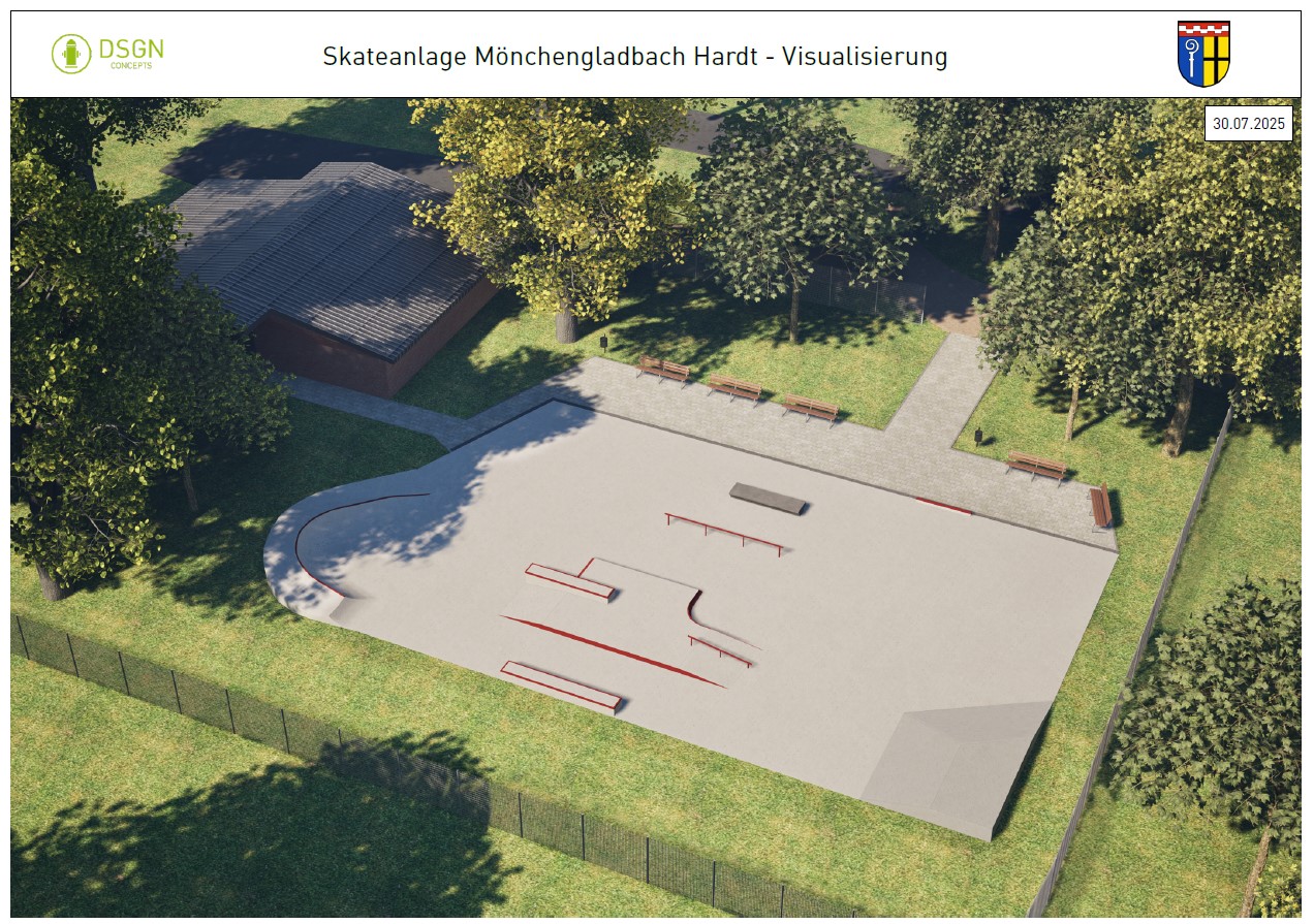 Der sanierungsbedürftige Skatepark Hardt soll umfassend erneuert werden, um die seit 2022 geschlossene Bahn wieder nutzbar zu machen. In Zusammenarbeit mit mags und dem Planungsbüro DSGN-Concepts wurden unter Einbeziehung von Skater*innen neue Pläne für die Anlage entwickelt. Diese wurden nun der Bezirksvertretung Nord vorgestellt.
