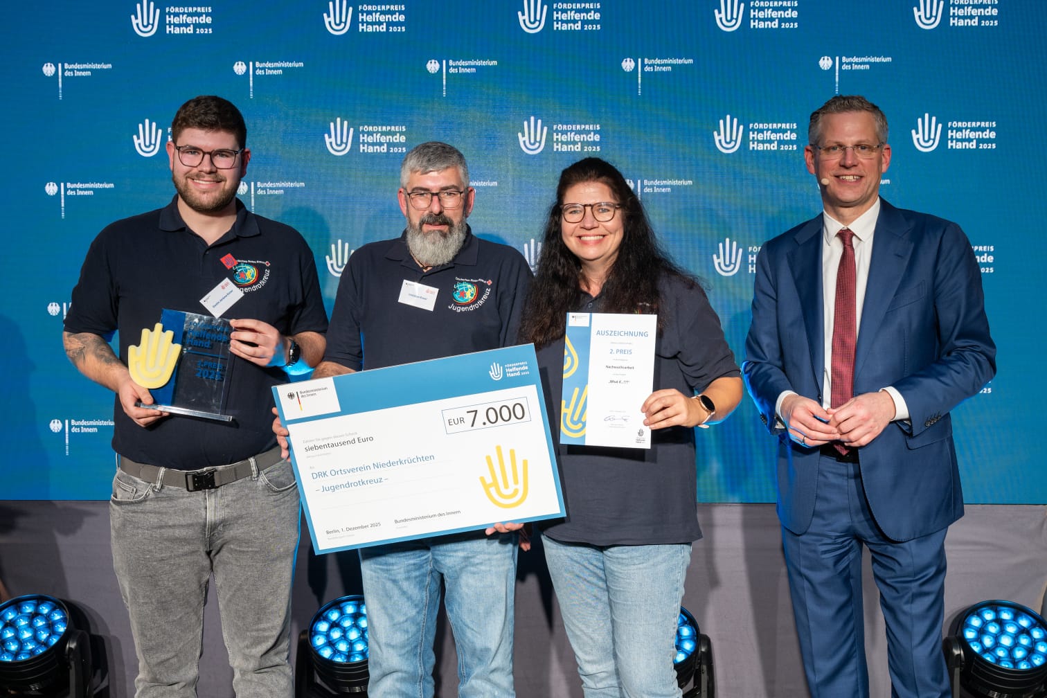 Das Jugendrotkreuz (JRK) Niederkrüchten wurde für sein Projekt „WHAT IF…?“ beim bundesweiten Förderpreis „Helfende Hand“ des Bundesministeriums des Innern und für Heimat (BMI) mit dem 2. Platz in der Kategorie „Nachwuchsarbeit“ ausgezeichnet.