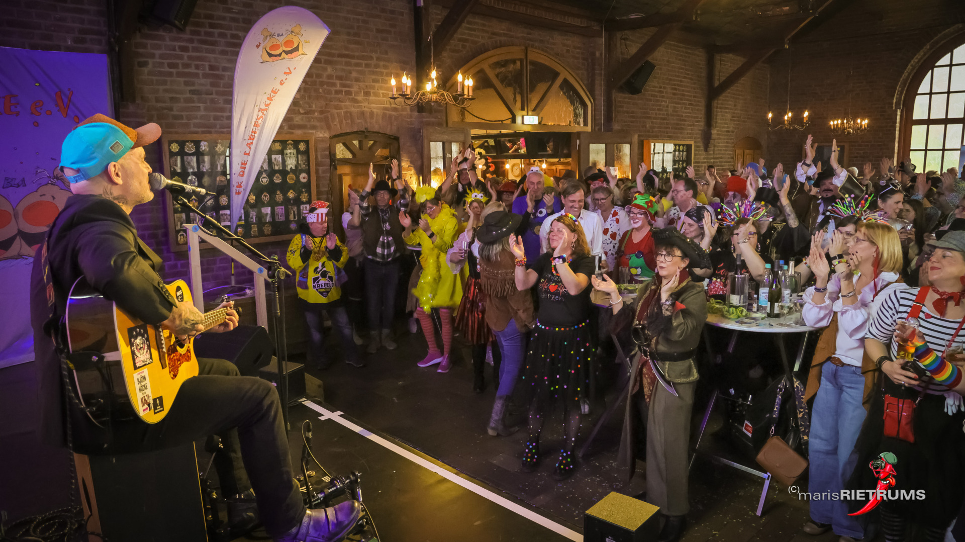 Weiter ging es anschließend nach Krefeld-Bockum ins Zeughaus der Prinzengarde, wo der Freundeskreis der Labersäcke e.V. zur 25en Jubiläumsfeier eingeladen hatte. Hier wurde gefeiert, gesungen und getanzt – ein Hit folgte auf den nächsten. Songs wie „Su lang mir noch am lääve sin“ oder „Et jitt kei Wood“ wurden textsicher und lautstark vom Publikum begleitet.