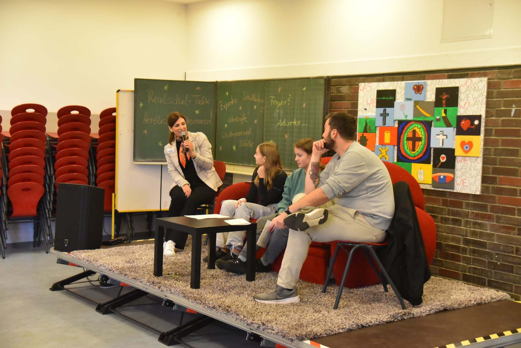 Altes und Neues fanden an diesem Tag harmonisch zusammen. Klassische Kreativtechniken wie der Kartoffeldruck standen ebenso auf dem Programm wie der Realschultalk, bei dem Besucherinnen und Besucher Schülerinnen und Schüler professionell interviewten. Diese Mischung zeigte eindrucksvoll, wie kreativ und lebendig Unterrichtsinhalte umgesetzt werden können. Ein besonderer Höhepunkt war die feierliche Übergabe eines Spendenschecks. Im Rahmen eines Sponsorenlaufs sammelten die Schülerinnen und Schüler fleißig Kilometer und damit Spendengelder u.a. für den Förderverein der Schule.