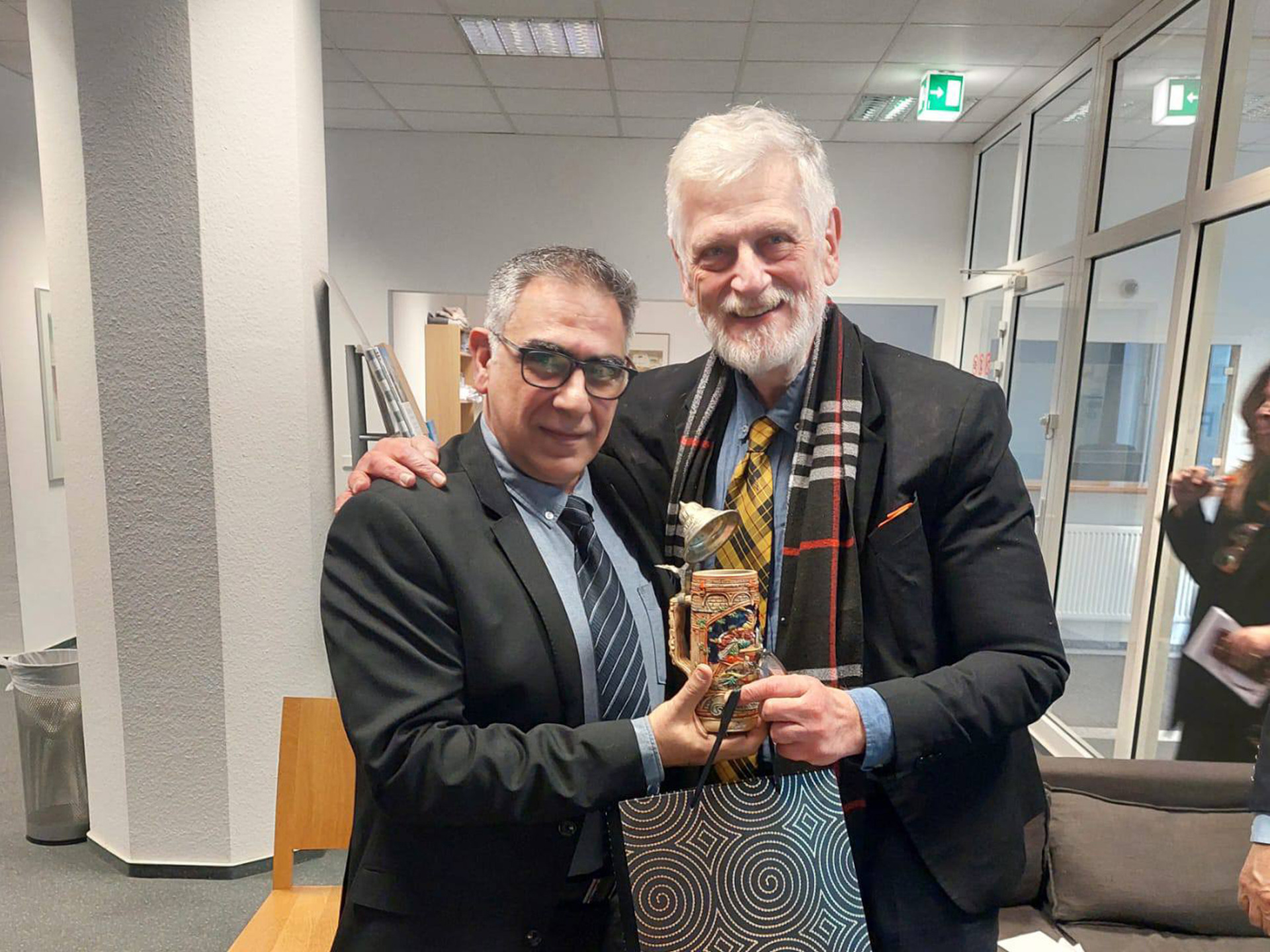 Für die Gemeinde waren der Vorsitzende des Verwaltungsrates, Nikolaos Ioannidis, sowie die Schatzmeisterin Argyro Baroulaki nach Düsseldorf gereist. In der sachlichen Atmosphäre des Konsulatsgebäudes entwickelte sich ein Gespräch, das sowohl konkrete Verwaltungsfragen als auch langfristige Perspektiven der deutsch-griechischen Beziehungen umfasste. Ioannidis nutzte die Gelegenheit, die Arbeit der Gemeinde in Viersen ausführlich vorzustellen – ihre kulturellen Veranstaltungen, sozialen Initiativen und Bildungsangebote, die sich an mehrere Generationen von in Deutschland lebenden Griechen richten.