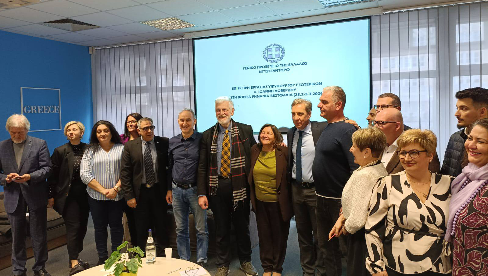 Viersen/Düsseldorf – Auf Einladung der Generalkonsulin Chara Baldouma empfing das Konsulat den stellvertretenden Außenminister Griechenlands, Ioannis Loverdos, zu einem Austausch mit Vertretern der organisierten Diaspora in Nordrhein-Westfalen. Unter den Gästen befand sich auch eine Delegation der Griechischen Gemeinde Viersen und Umgebung, die ihre Anliegen mit Nachdruck vortrug.