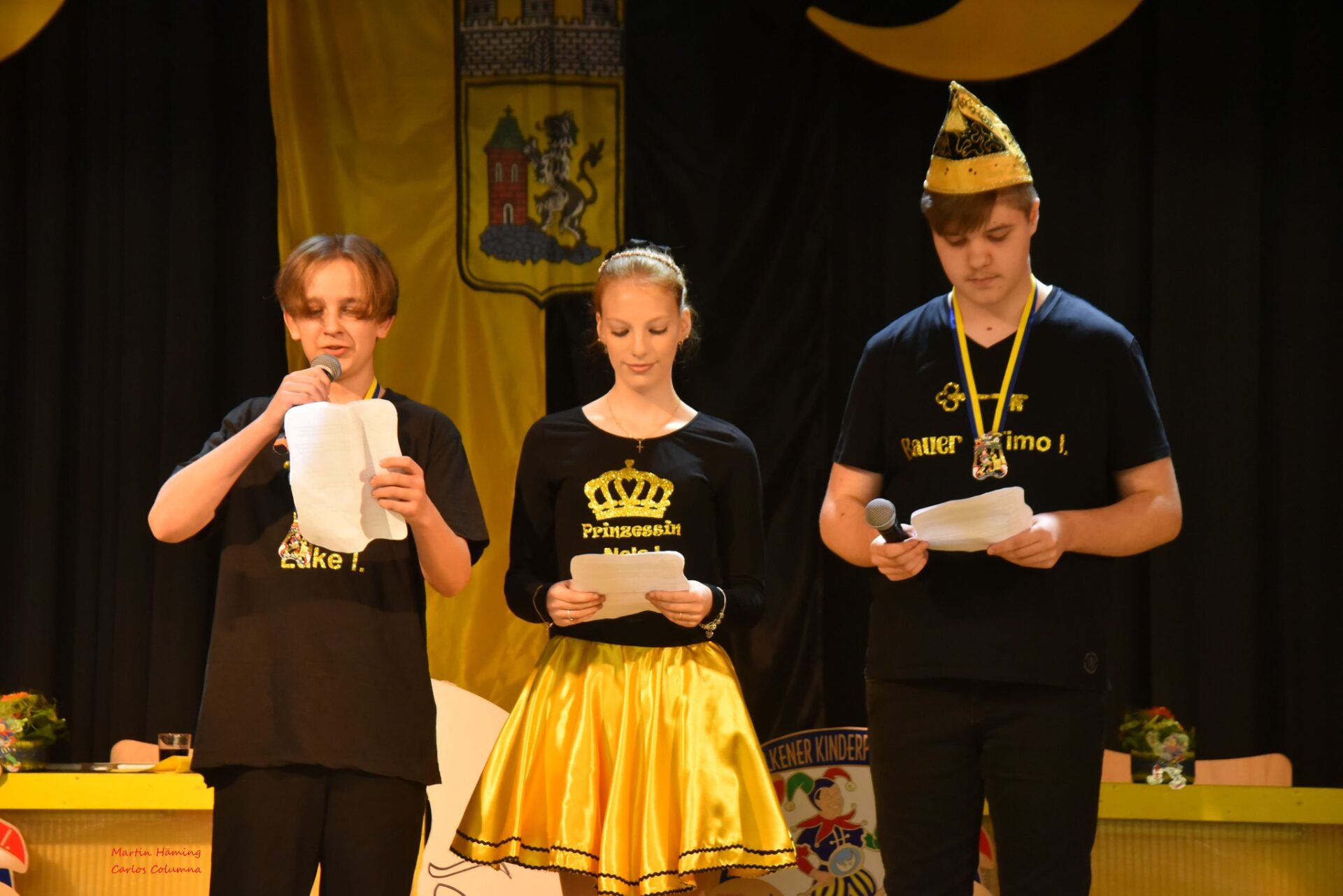 Aber Halt, jetzt haben wir schon zuweit vorgegriffen. Werfen wir einen kleinen Blick zurück. Denn das nun frisch inthronisierte Kinderprinzenpaar war schließlich nicht alleine das Highlight auf der Bühne. Ganz am Anfang nämlich war es das Dölker Kinderdreigestirn, Luke I., Nele I. und Timo I., die ein letztes Mal mit ihrem Tanz und einer Rede in das Rampenlicht traten.