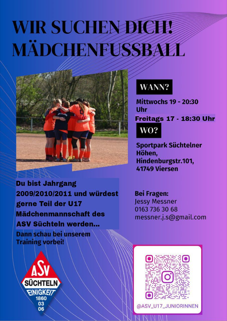 Mädchenfußball beim ASV-Süchteln – Spielerinnen gesucht