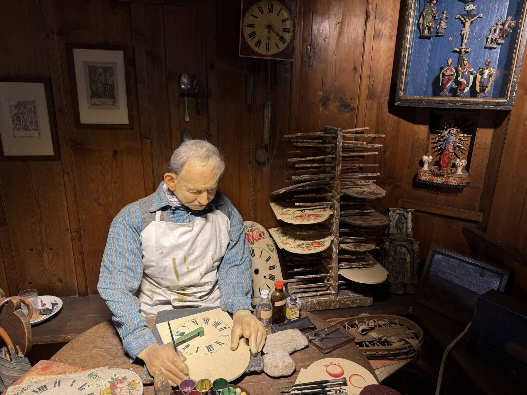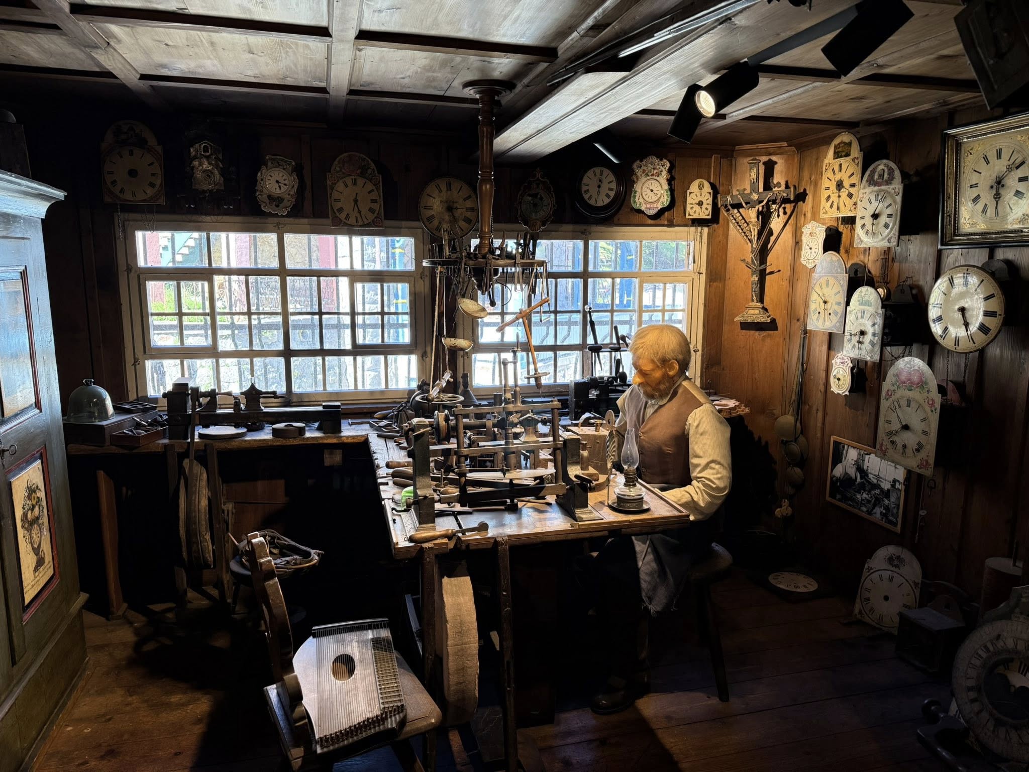 Schon der erste Blick fällt auf ein Meer aus Uhren, die in leisen Takten ihre Geschichte erzählen. Über vier Jahrhunderte hinweg reicht die Sammlung, von filigranen, handgeschnitzten Kuckucksuhren bis zu monumentalen Standuhren, die einst stolze Bauernhäuser schmückten. Daneben zeugen Trachten mit farbenprächtigen Stickereien, kunstvolle Holzschnitzereien und filigrane Strohflechtarbeiten vom handwerklichen Können vergangener Generationen. Sogar eine originale Uhrmacherwerkstatt wurde im Museum detailgetreu eingerichtet – mit Werkzeugen, Schraubstöcken und feinsten Zahnrädern.