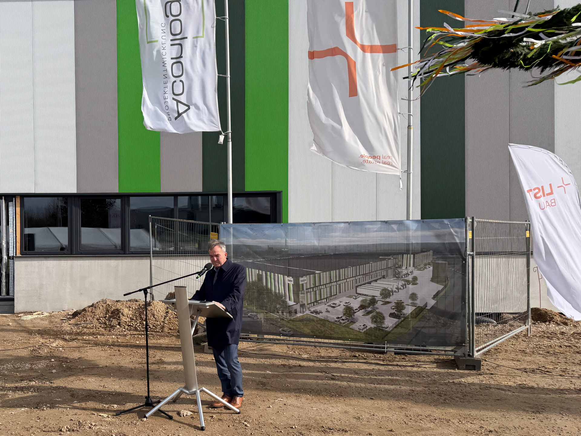 Während des Richtfestes würdigte Aconlog-Geschäftsführer Oliver Blüher den Baufortschritt und die Arbeit der beteiligten Unternehmen. Das Richtfest, so Blüher, sei ein traditioneller Moment des Dankes an alle, die am Bau beteiligt sind. Mit dem Richtspruch werde der erreichte Meilenstein gefeiert und zugleich die Leistung der Handwerker gewürdigt – ihre handwerkliche Qualität, ihre Verlässlichkeit und ihr Beitrag zum Gelingen des Projekts.