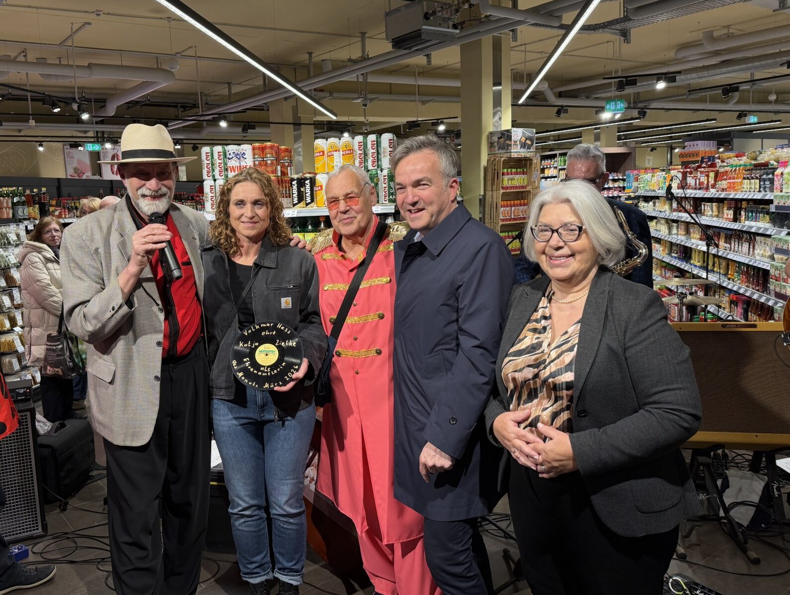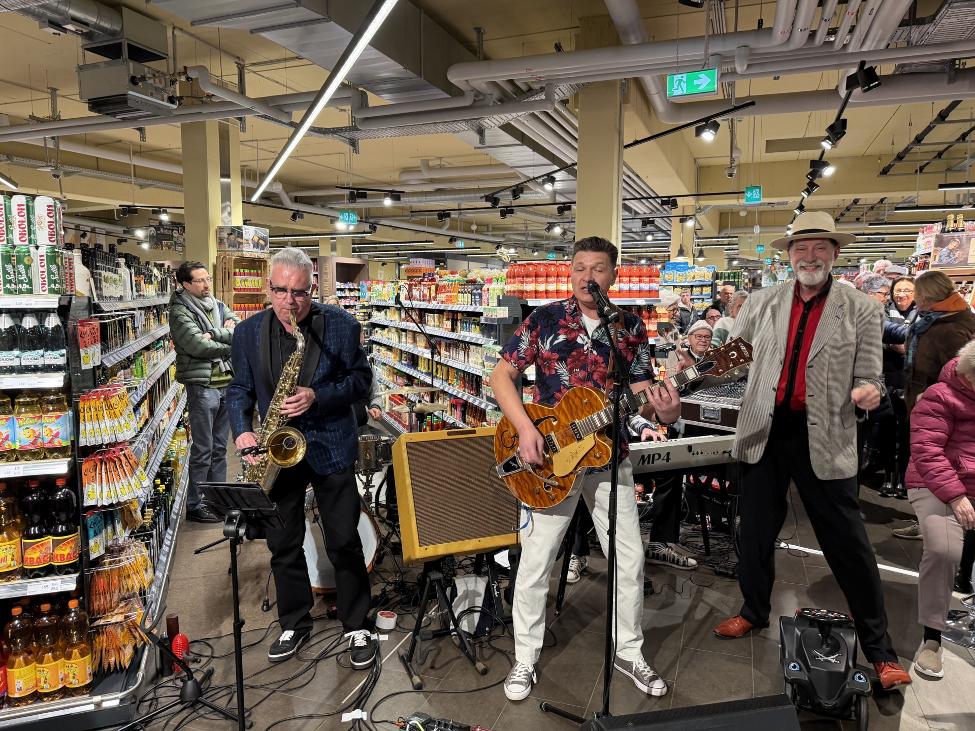 Es war ein Bild, das man so schnell nicht vergisst: Petticoats wirbelten zwischen Regalen, dazu Outfits, die an die Ära der Beatles erinnerten. Tanzpaare bewegten sich zwischen Konservendosen und Kühltheken, als sei genau dies der natürliche Ort für ihre Schritte. Die Grenzen zwischen Alltag und Ausnahmezustand verschwammen und gerade darin lag der Reiz des Abends. Dabei blieb es nicht allein bei der Live-Musik. Volkmar Hess, der Initiator der Veranstaltung, griff selbst zu einem besonderen Mittel der Unterhaltung: Mit Nostalgieplattenspielern ließ er historische Schallplatten erklingen und schuf so eine Verbindung zwischen den Zeiten. Die Gäste tanzten nicht nur zu aktuellen Darbietungen, sondern auch zu Klängen vergangener Jahrzehnte.